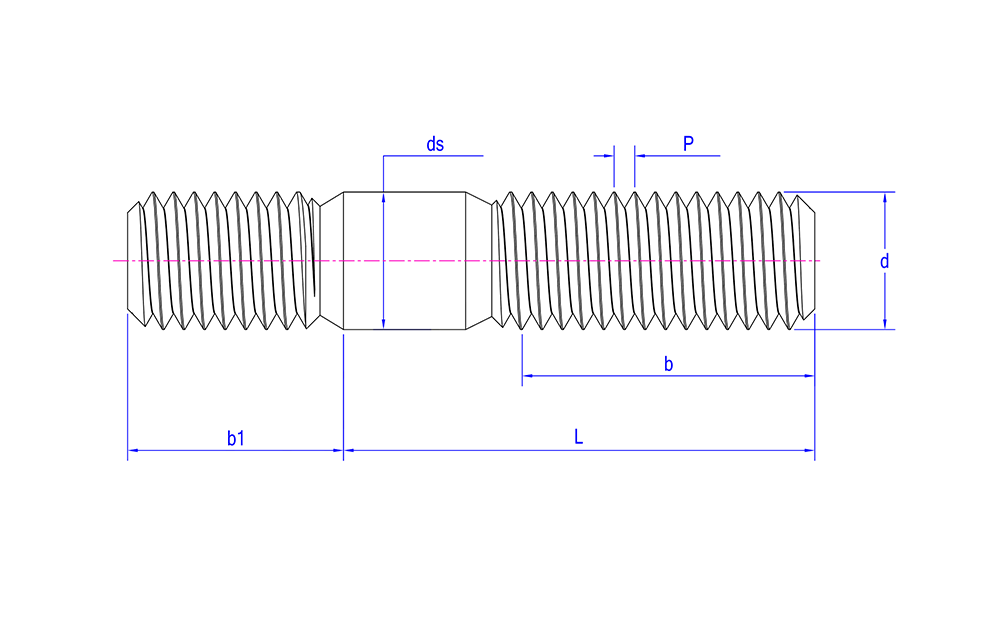 | Caratteristiche della testa | Parti cilindriche con filettatura su entrambe le estremità, solitamente in metallo, con una sezione non filettata al centro. |