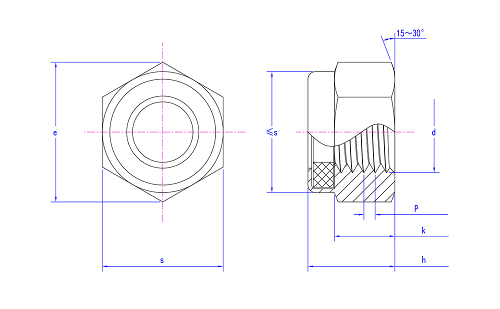 | Vantaggi e caratteristiche | Interno con inserti in materiale non metallico, come anelli in nylon, per migliorare l'attrito e la forza di bloccaggio Utilizzato per fissare i collegamenti per evitare allentamenti e vibrazioni |
