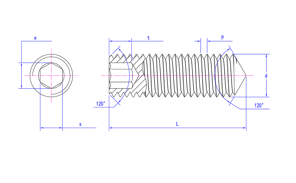 Viti di fissaggio a esagono incassato in acciaio inossidabile DIN915 con punta a cane