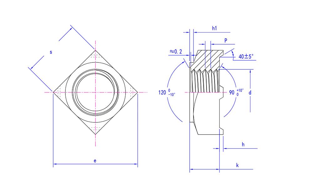 | Caratteristiche interne | Filettatura interna standard, esterna quadrata, saldabile alla struttura |